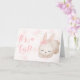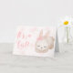 É uma garota! - Cartão de parabéns para uma menina nova com fundo de flores rosa e um coelho bebê.