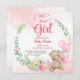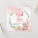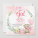 É um modelo de convite para chás de fraldas de arco floral para ursos de peluche. Urso de pelúcia bonito com fita cor-de-rosa e balões cor-de-rosa para chá de fraldas feminino.
