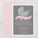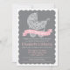 Um carrinho de bebê bonito do estilo do laço (pram/carrinho de criança/carruagem) decorado com pássaros de bebê e redemoinhos das videiras termina este convite moderno do chá de fraldas com beira scalloped. Muito doce e fácil personalizar com seu próprio texto. Ilustração original pelo pj_design. Verifique por favor minha loja para ver se há mais como esta.