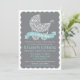 Um carrinho de bebê bonito do estilo do laço (pram/carrinho de criança) decorado com pássaros de bebê e redemoinhos das videiras termina este convite moderno do chá de fraldas. Muito doce e fácil personalizar com seu próprio texto. Ilustração original pelo pj_design. Verifique por favor minha loja para ver se há mais como esta.