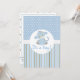 É um Convite para Chás de fraldas de Menino em azul e branco com cordeiro de bebê.