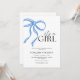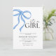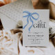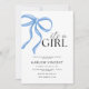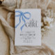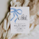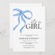 Celebre a chegada de uma menina com este convite elegante e encantador de chá de fraldas! Apresentando um design de pasta macia com um delicado arco cor-de-rosa, este convite adiciona um toque de doçura ao seu evento especial. Perfeito para pais que adoram uma mistura de tons clássicos azuis e sutis cor-de-rosa.