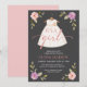 Este convite para o chá de fraldas apresenta uma aquarela de um quadro floral rosa e violeta com um vestido para meninas e o ditado "É uma garota". Personalize facilmente todo o texto para torná-lo seu próprio. Um design elegante e adorável — perfeito para a mamãe ser!
