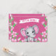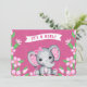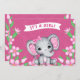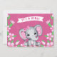 É um convite para elefantes bonitinhos em Chá de fraldas rosa e branco. Elefante de bebê bonito é rodeado por flores cor-de-rosa. Personalize com os detalhes do seu chá de fraldas.