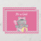 É um Convite Hippo para Meninas a Rosa e Branco. O hipopótamo bonito tem um arco rosa, um chocalho rosa, uma fralda rosa e uma bola de praia. Personalize com os detalhes do seu chá de fraldas. designs wkristians