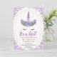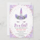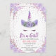 É uma Menina Cabeça de Unicórnio Flores Florais Purple Pastel Watercolor Invitation