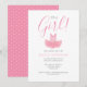 Chá de fraldas de Ballerina tutu em cor-de-rosa com um belo tutu de bailarina. A doce mensagem diz "É uma menina!" e o convite pode ser personalizado com a inclusão dos detalhes do seu próprio chá de fraldas. Se você está esperando uma garota e quer comemorar com a cor tradicional de rosa-bebê, este convite está num doce rosa-bebê. O verso do convite está cor-de-rosa com um padrão de bolinhas branca.