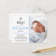 Celebre a chegada do seu bebê com este "É um Rapaz!" divertido e fabuloso Cartão-postal de convite à pulverização do chá de fraldas. Substitua a foto por uma foto do seu novo bebê. Personalize a fonte azul e preta e a cor do texto à sua escolha ou mantenha este estilo popular de tipografia simplesmente usando o menu de edição.