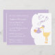 Este convite do chá de fraldas 5x7 tem uma cegonha amarela bonito guardarar um bebê em uma cobertura roxa. Você pode facilmente personalizar sua informação do partido no lado esquerdo. Design de ©2010 JD Digi
