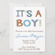 É um garoto! chá de fraldas de convite azul