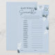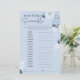Adicione uma reviravolta divertida à sua celebração com este elegante jogo de palavras de Chá de fraldas azul "É um menino". Projetada com peônias de cor aquosa e verde delicado da Coleção Flor Azul, esta atividade imprimível combina diversão clássica com encanto floral refinado. Os convidados vão adorar tentar desfazer palavras populares relacionadas ao bebê num desafio cronometrado — uma forma perfeita de manter a energia leve e entreter durante o seu chá de fraldas. Ideal para todas as idades e fácil de jogar!