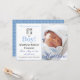 Celebre o nascimento do seu novo bebê com este divertido e fabuloso "É um Rapaz!" Anúncio de Nascimento do Menino. Substitua a foto pela sua. Personalize a fonte azul e preta e a cor do texto à sua escolha ou mantenha este estilo popular de tipografia simplesmente usando o menu de edição. Um padrão de fita azul e branca é apresentado no verso do convite. Outras cores e padrões estão disponíveis. Os adesivos correspondentes, envelopes e etiquetas de endereço de devolução estão disponíveis.