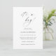Nossa coleção de chás de fraldas tão simples e elegante mostra "é um menino" em tipografia caligráfica moderna e estilizada e escrita à mão. Personalize esta design com as suas próprias informações para tornar isto verdadeiramente seu. Disponível em várias cores, escolha sua opção favorita ou adicione a sua! Esta versão apresenta azul empoeirado, uma elegante escolha de cores moderna para o menino.