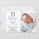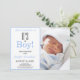 Compartilhe a notícia de que espera um bebê com este doce e moderno "É um Rapaz!" Convite para chás de fraldas. Substitua a foto pela sua. Personalize a fonte azul e preta e a cor do texto à sua escolha ou mantenha este estilo popular de tipografia simplesmente usando o menu de edição. Um padrão de diamante azul aparece no verso do convite. Outras cores e padrões estão disponíveis.