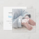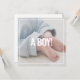 Um design limpo com uma área de texto fácil de editar faz com que esta placa tenha! Perfeito para chás de fraldas ou gênero revela celebrações. Este cartão é excelente de compartilhar a notícia do gênero do bebê com a família e os amigos. A letra "É um menino!" faz a sua mensagem sobressair, mas ainda assim dá uma olhadela elegante ao seu anúncio. Este cartão moderno de bebê foi projetado para mostrar seu próprio texto personalizado em seu próprio fundo fotográfico que certamente impressiona amigos e família.