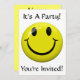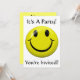 É um partido! convite com a cara feliz amarela grande no olhar 3d de um pino real! Personalize facilmente a parte dianteira e a parte traseira do texto. Excelente para aniversários, aniversários, graduações, eventos especiais, etc.