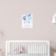 Balões azuis claros e escuros e confete com lindos florescimentos tipográficos. O texto diz: É um menino! Bem-vindo ao chá de fraldas de nome da mãe!