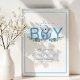 Bem-vindos aos seus convidados com este adorável poster chá de fraldas com um elefante de aquarela doce, flores azuis e verde-selva. Com "é um menino" em um roteiro elegante, este signo com tema safari é perfeito para colocar o tom na entrada do seu chá, mesa de presente ou área fotográfica. Projetado para comemorações de bebês, ele adiciona um toque animador e coeso a sua decoração. Personalize o texto para um monitor polido e perfeito para a imagem.
