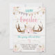 Este um convite selvagem adorável do aniversário pode ser usado para toda a idade. Caracterizando os antlers e gráficos florais lindos este convite é macio e feminino.