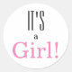 Celebre sua chegada com esta é uma garota! Clássico Redondo. Esta design apresenta o texto "É uma Rapariga!" em letras pretas e cor-de-rosa suave.