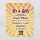 é uma menina, chá de bebê, convite de código qr retrô roxo amarelo