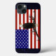 Uma águia careca varreu o céu de sua perca em um galho de árvore; sobreposto a uma bandeira dos Estados Unidos.