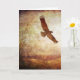 Uma águia voa sobre uma paisagem sombria. O dentro diz que quando as coisas parecerem desoladas, deixe seu coração voar. Um cartão perfeito para inspirar alguém.