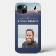 Capa de telefone memorial à qual você pode tirar uma foto do seu amado contra um pano de fundo azul com uma águia em ascensão. Em "Loving Memory" em letras brancas elegantes.