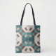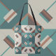 This is a modern yet timeless geometric design in earthy tones of teal, brown and stone The grid pattern and the natural colors are warm, organic, and easy to pair with almost anything.