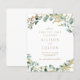 Os cartões salve a data russos apresentam um verde botânico de cor aquática e um guião e letra chic modernos, elegante e romântico, excelente para casamento rústico moderno, casamento de jardim botânico e casamento de boho country. Veja todas as peças correspondentes na coleção.