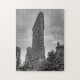 Foto em preto e branco do icônico edifício Flatiron, NYC.