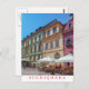 Uma bela vista de edifícios coloridos em Sighisoara, na Romênia, impressa num cartão postal.