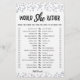 Adquira este jogo editável e desfrute de alta qualidade Ela iria Preferencialmente para o seu evento! Este é um modelo de jogo, você pode mudar as perguntas como quiser! Confete prateado.