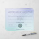 Efeito moiré moderno certificado de conclusão neutro em termos de sexo. Cores: lacrimejo e azul.