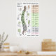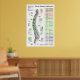 A poster quiroprática enumera os efeitos da subluxação da coluna nas áreas do corpo e os possíveis sintomas associados. Cor codificada pelo nível da coluna. Ilustração da inervação nervosa dos órgãos pelo nível da medula. Dimensionado para gráfico de 24" X 36".
