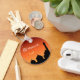 Ilustração Eid Greeting com uma cena do céu noturno: silhueta de uma mesquita num céu vermelho à noite.