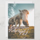 Einen schönen Valentinstag mit schauendem Pferd und handgeschriebenen Grüßen auf der Vorderseite der Karte. Die restlichen Flächen sind frei verfügbar.