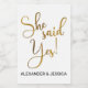 Um texto moderno de guião dourado com Ela Disse Sim num estilo minimalista com os seus nomes personalizados abaixo numa simples fonte moderna.