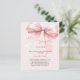 Um elegante fundo rosa, decorado com um arco cor-de-rosa. Personalize e adicione um nome e detalhes da parte. Texto: Ela é casando. 1 folha = 1 convite impresso de borda a borda.