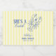 Rótulos de vinho elegantes para festa de noiva costeira com listras amarelo manteiga e tipografia azul refinada. Uma lagosta de arte linear charmosa adiciona um toque praiano caprichoso, enquanto a mistura de tipografias modernas e vintage cria um design atemporal e fresco. Perfeito para celebrar o amor com sofisticação à beira-mar.
