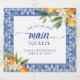 Este convite de chá de panela de noiva apresenta um tema azul brilhante com cítricos.