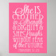 Cada garotinha precisa disso no banheiro ou perto do espelho do quarto. Diz: "Ela está vestida com força e dignidade, e ri sem medo do futuro." Este produto está disponível em diversos estilos e cores.