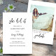 Cartão de convite de festas de graduação preto-e-branco, simples e minimalista moderno, "Ela Fez". Um layout mínimo apresenta uma foto do formando. Edite facilmente detalhes para personalizar palavras, cores, fontes. Também disponível como um download para a Conveninece.