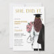 Ela fez isso, na Faculdade de Medicina Convidou uma fêmea em casaco de laboratório com estetoscópio e texto cor-de-rosa para flores, lê-se ELA FEZ. Convite para festas de formatura de Medicina para mulheres que se formaram na faculdade de Medicina. É fácil personalizar o convite para ela.