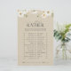 Um quebra-gelos reluzente com uma aresta belamente refinada. Este jogo "Ela Preferencialmente" revela quão bem os convidados conhecem a personalidade, os caprichos e as preferências da noiva, tudo no espírito da competição amigável. O detalhe floral adiciona um toque de charme no campo, complementando perfeitamente as capas rústicas ou os louças de papel inspirados em kraft. Ideal para misturar precocemente ou preencher a lacuna entre atividades. Copyright Anastasia Surridge, todos os direitos reservados.