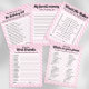 Traga diversão e risadas para a sua celebração com o nosso Jogo de Aniversário Would She Rather? (Ela Preferiria?). Essa atividade divertida desafia os convidados a adivinhar o que a aniversariante preferiria em vários cenários. Desde escolher entre dormir até tarde ou acordar cedo, até escolher pizza de pepperoni em vez de pizza de queijo, esse jogo certamente irá gerar conversas e risadas. A pessoa com mais respostas corretas vence! Com um design elegante com listras rosa e detalhes cintilantes, ele combina perfeitamente com o tema da sua festa. Além disso, todas as opções são totalmente personalizáveis para tornar o jogo único e adequado à aniversariante. Ideal para aniversários, chá de bebê e outras reuniões festivas, esse jogo manterá seus convidados engajados e criará momentos memoráveis.