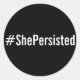 #ElaPersistente, texto branco sobre adesivos preto