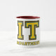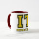 ELE caneca do departamento. Se você está no departamento da tecnologia da informação, você pode mostrar-lheo fora com este caneca de café do serviço. Naturalmente, você pode pôr o chá nele. Ou cacau quente. Ou soda. O design é uma pia batismal que olhe como a faculdade e os esportes. Uma pia batismal grossa do serif, ya não sabe. As letras são amarelo dourado com uma beira fina da cerceta e uma beira marrom mais grossa. Uma caneca de café do geek do divertimento.