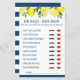 Ponha as habilidades de detetive dos seus convidados à prova com este jogo de chá de panela. Os convidados vão adivinhar quem disse o quê... Foi a noiva ou o noivo? De "Eu fiz a primeira jogada" a "Eu levo mais tempo para me preparar", este jogo é sempre bom para risos e surpresas. Estimulado para combinar com o seu tema limão de compressão principal fresco e divertido, esta placa de jogo imprimível apresenta avisos audaciosos para todos os bonés e design limpo e inspirado em citros. É a maneira perfeita de envolver os convidados e despertar a conversa em qualquer chá de panela ou almoço.