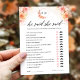 O Ele disse que ela disse que a placa de Chá de panela Greenery do Jogo é um jogo encantador e interativo que trará diversão e risos para a sua celebração. Apresentando elegantes designs de aquarela com acentos verdes e florais em tons de pêssego, este jogo desafia os hóspedes a adivinhar se a noiva ou o noivo fizeram várias declarações, fazer-a uma atividade memorável e envolvente para todos.